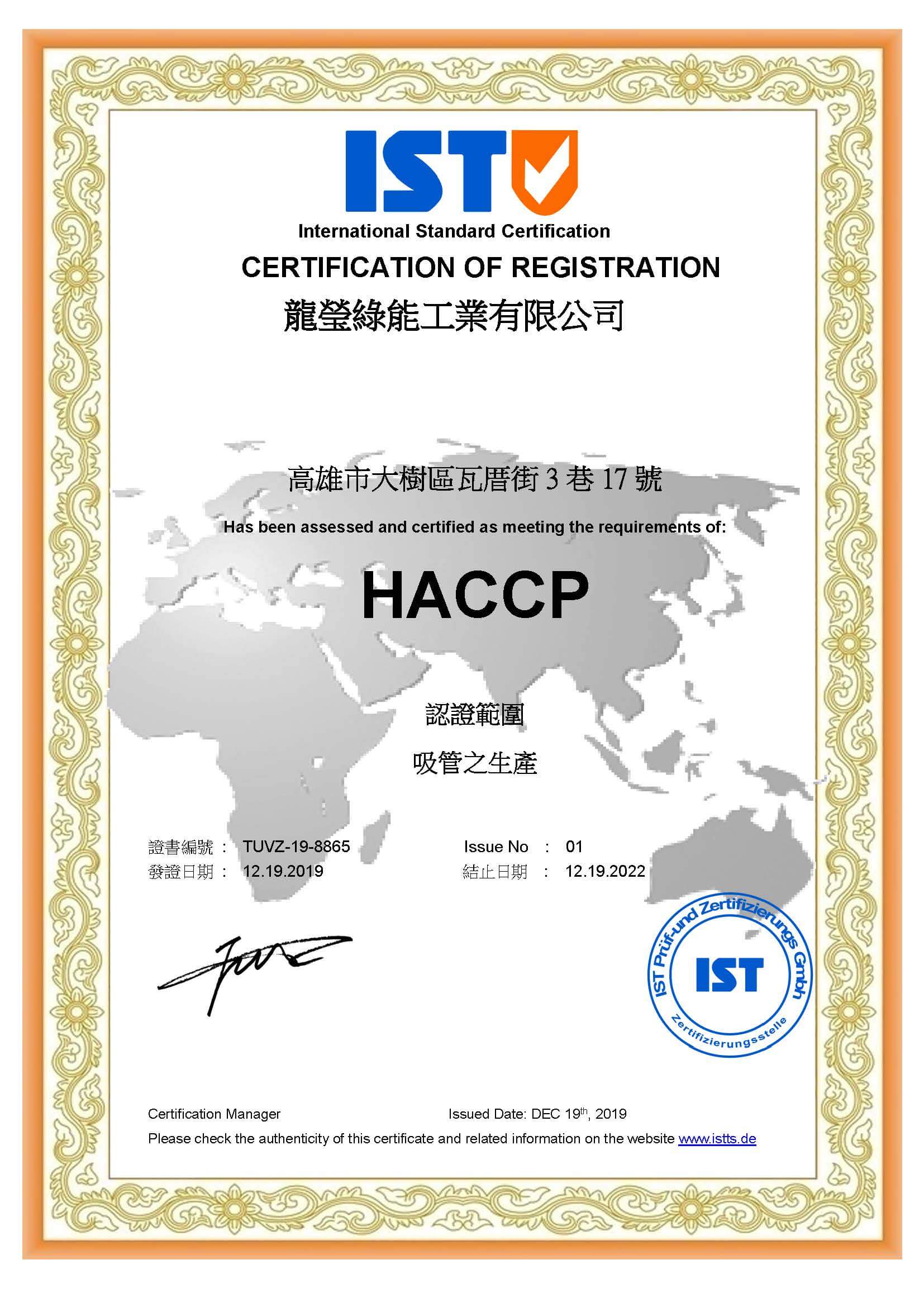 公司於2019年取得ISO22000以及HACCP,維持商品品質。 秉持愛護地球的精神,致力於永續發展,垃圾污染與你我的生活息息相關。改變,從自己做起!